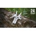 Кількість функційплоскогубці, кусачки, маленька викрутка плоска, ніж, серрейтор, консервний ніж, відкривачка для пляшок, для зняття ізоляції, пила, захоплення для гайок і циліндрів, ножиці, шило, тримач біт, 12 змінних насадок в комплекті