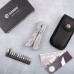 Кількість функційплоскогубці, кусачки, маленька викрутка плоска, ніж, серрейтор, консервний ніж, відкривачка для пляшок, для зняття ізоляції, пила, захоплення для гайок і циліндрів, ножиці, шило, тримач біт, 12 змінних насадок в комплекті